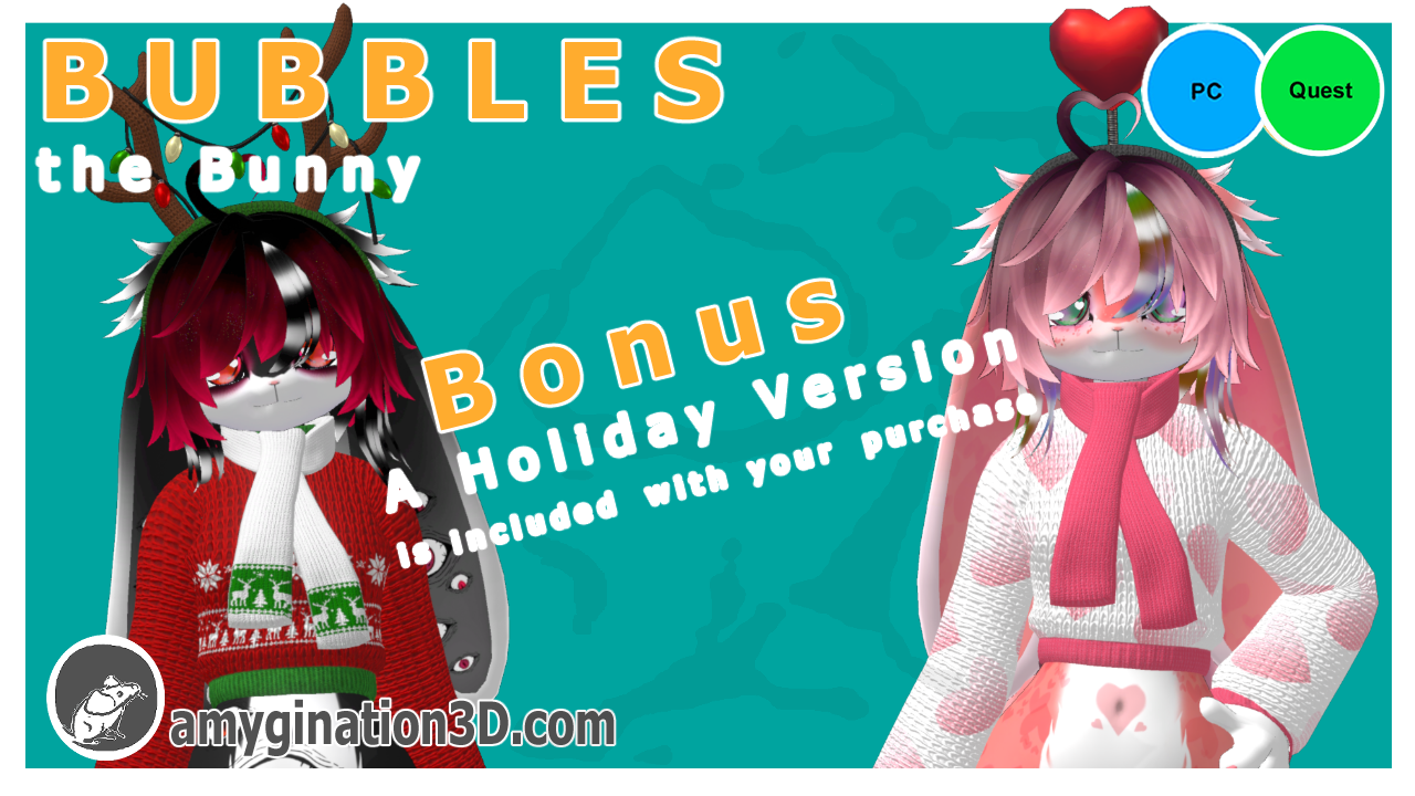 Tags: Deira, Furry, Cute, Onesie, Bunny, Bubbles, amygination, vrchat, avatar, adorable, headpat, comfy