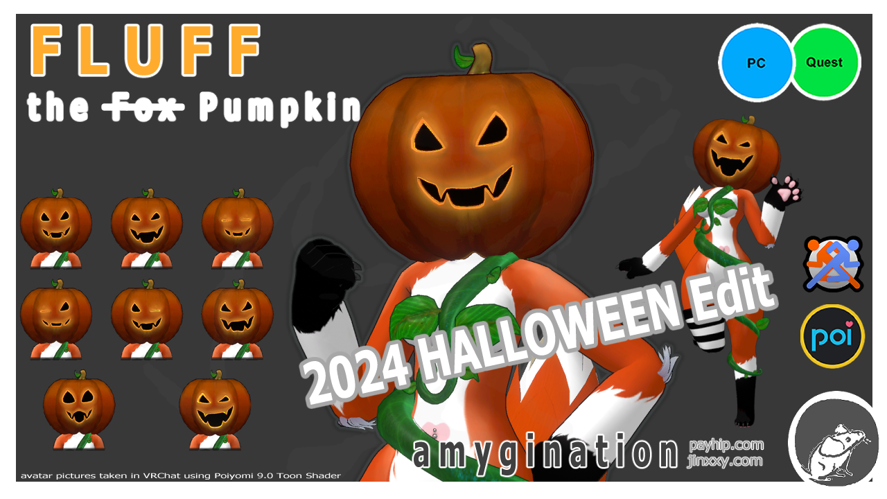 Tags: Deira, Furry, Cute, Fox, Fluff, amygination, vrchat, avatar, adorable, headpat, halloween, pumpkin, optimized